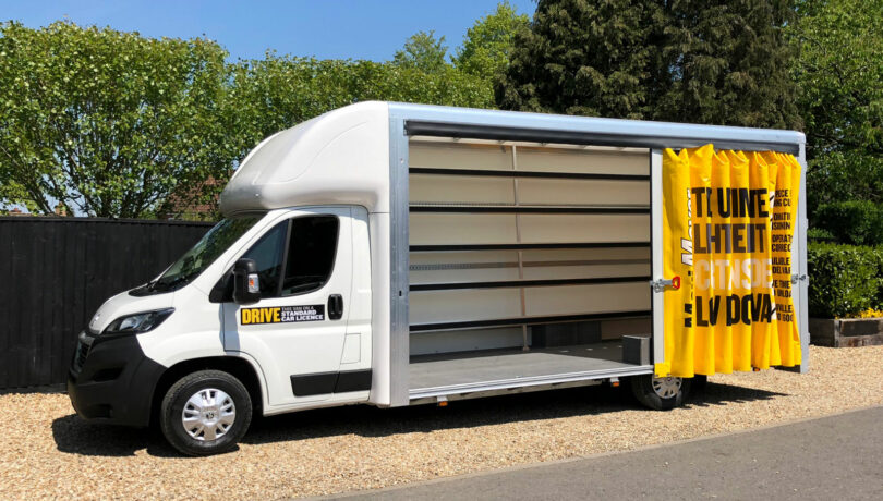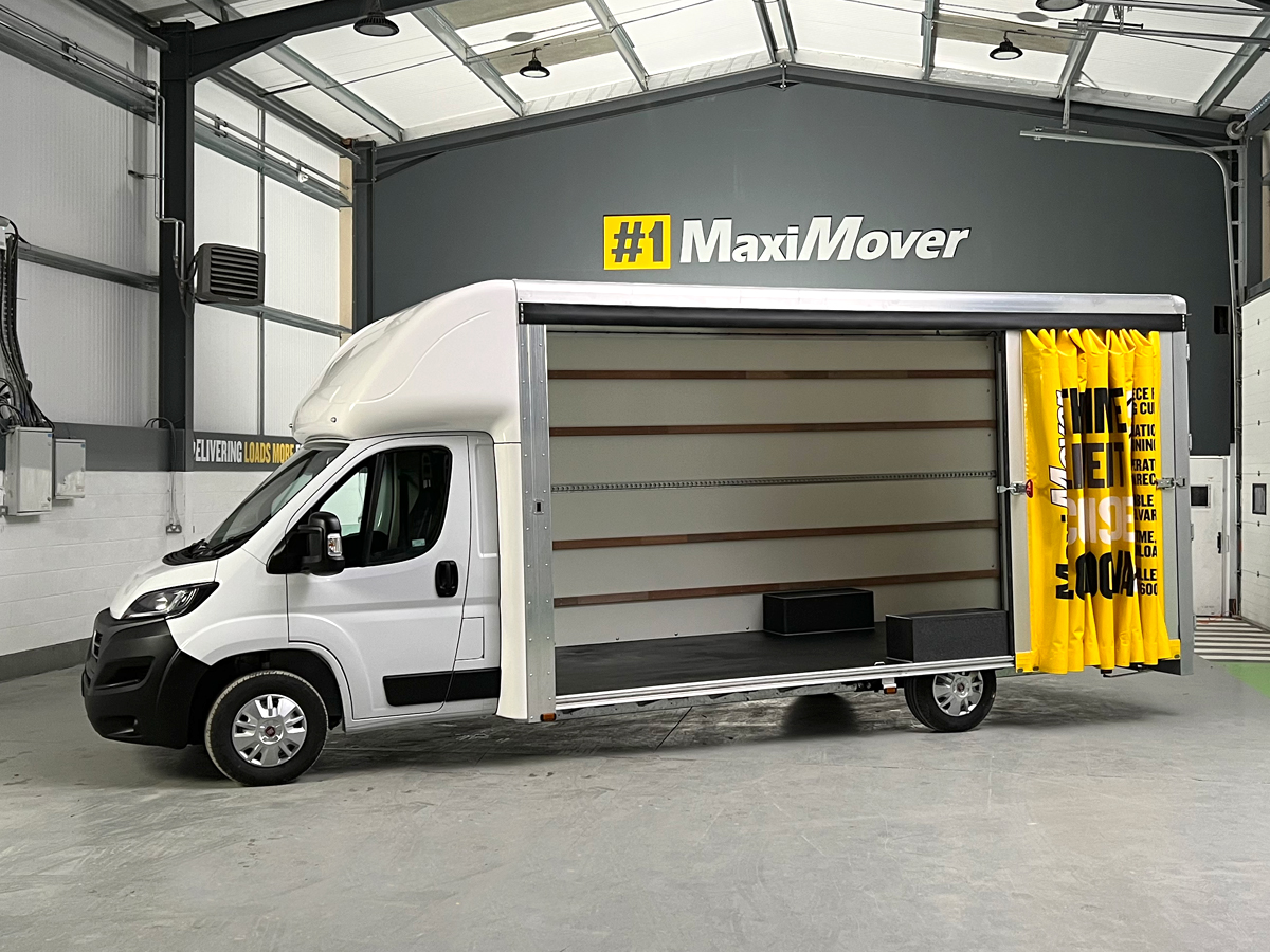 Curtainsider vans are used for cargo that is commonly carried on a flat bed, by being covered and enclosed it offers protection and security to the cargo. The Maxi Mover curtainsider conversion is available with a curtain fitted to just one side or the option of curtains fitted on both sides offering greater flexibility to deliver standard cargo in both small and large sizes, as well as being able to deal with odd shaped or non standard freight items.
